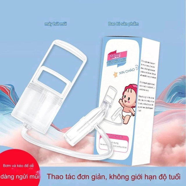 Dụng cụ hút mũi kéo tay với đầu hút thiết kế đặc biệt, hỗ trợ vệ sinh mũi nhẹ nhàng và an toàn cho trẻ nhỏ.